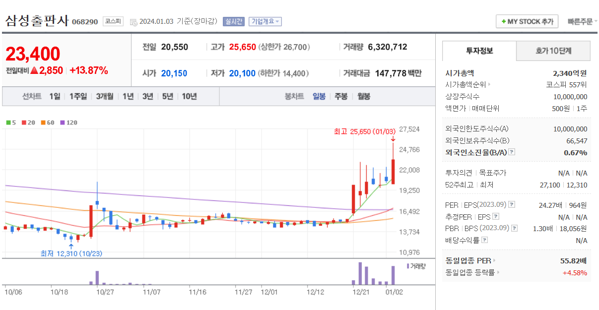 핑크퐁으로 유명한 회사이다. 핑크퐁이 한창 유행일 때 아기상어 관련주로 엮인 적이 있다. 유아동 출판물 및 영어교재 사업을 하고 있기에 관련주로 엮인다.