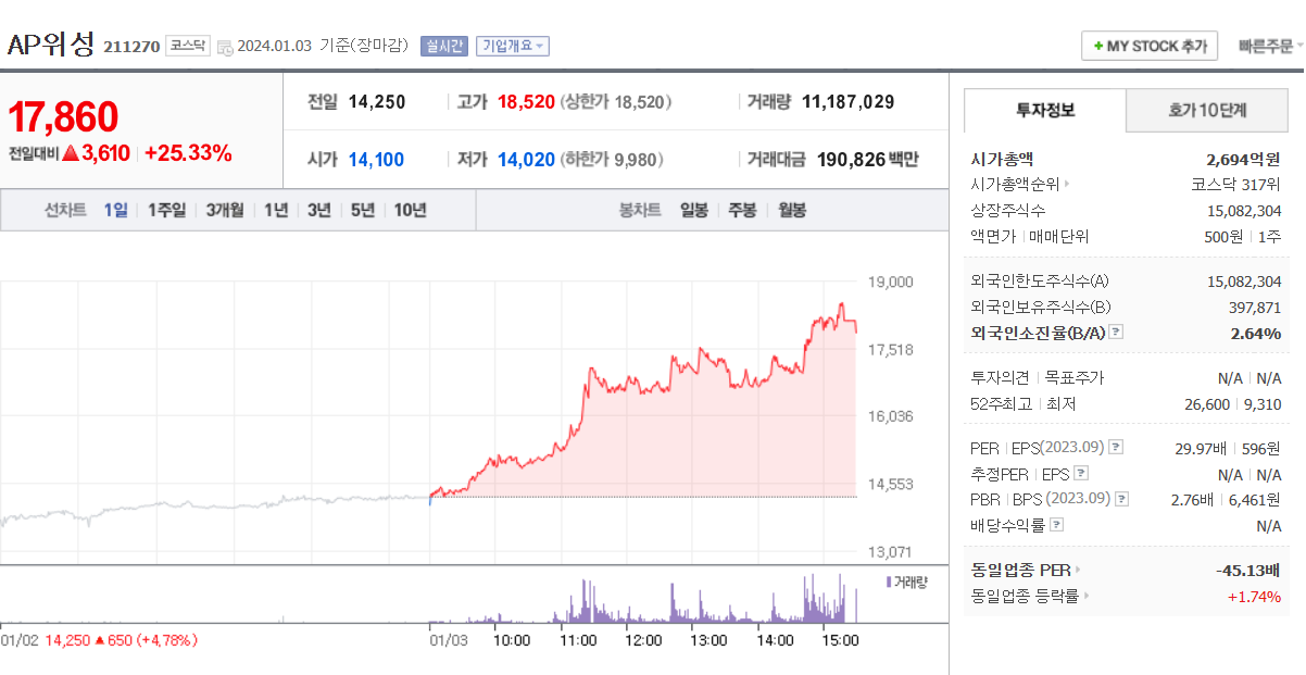 친구가 5년 전 AP위성에 투자하였다. 그 친구의 발상은 언젠가는 우주산업이 미래 먹거리가 될 것이라는 생각을 가지고 있었는데 나는 그 당시 AP위성의 재무제표만 보고 비웃었다. 하지만 5년이 지난 지금은 그 친구의 선구안을 칭찬하고 있다. 비록 시간은 오래 걸렸더라도 방향만큼은 정확한 게 아니었나 싶다. 현재 우리나라는 우주산업에 박차를 가하고 있으며, 정부 또한 이를 밀어주는 듯하다. 위성, 탐사선, 유인우주선까지 머지않은 미래에 나올 것이라 확신한다. 그러한 의미에서 다들 AI, 반도체, 2차 전지와 같은 주류 종목에 관심을 기울이기 전에 조금이라도 미래 산업에 관심을 둬보는 것도 나쁘지 않다.