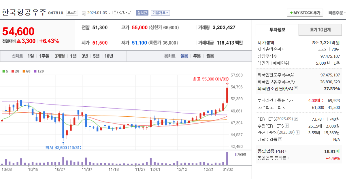 윤석열 대통령은 취임당시 우주산업을 육성하겠다는 공약이 있었다. 누리호에 이어 달 탐사선 다누리까지 쏘아 올렸으며 활발하게 우주산업에 있어 치열하게 경쟁하고 있다. 우주항공청 관련 특별법 또한 국회 통과를 기다리는 와중에 새해가 되자 항공우주산업이 다시 한번 조명을 받는듯하다. 우리는 항공우주산업과 관련된 주식들에 대해 정리해 보는 시간을 가져보자.