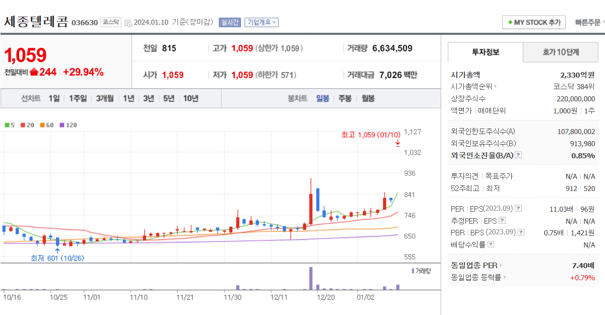 1. 세종텔레콤