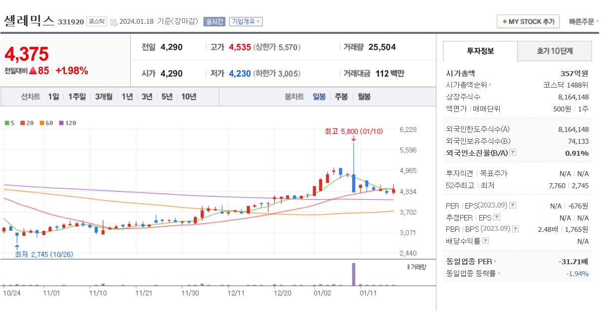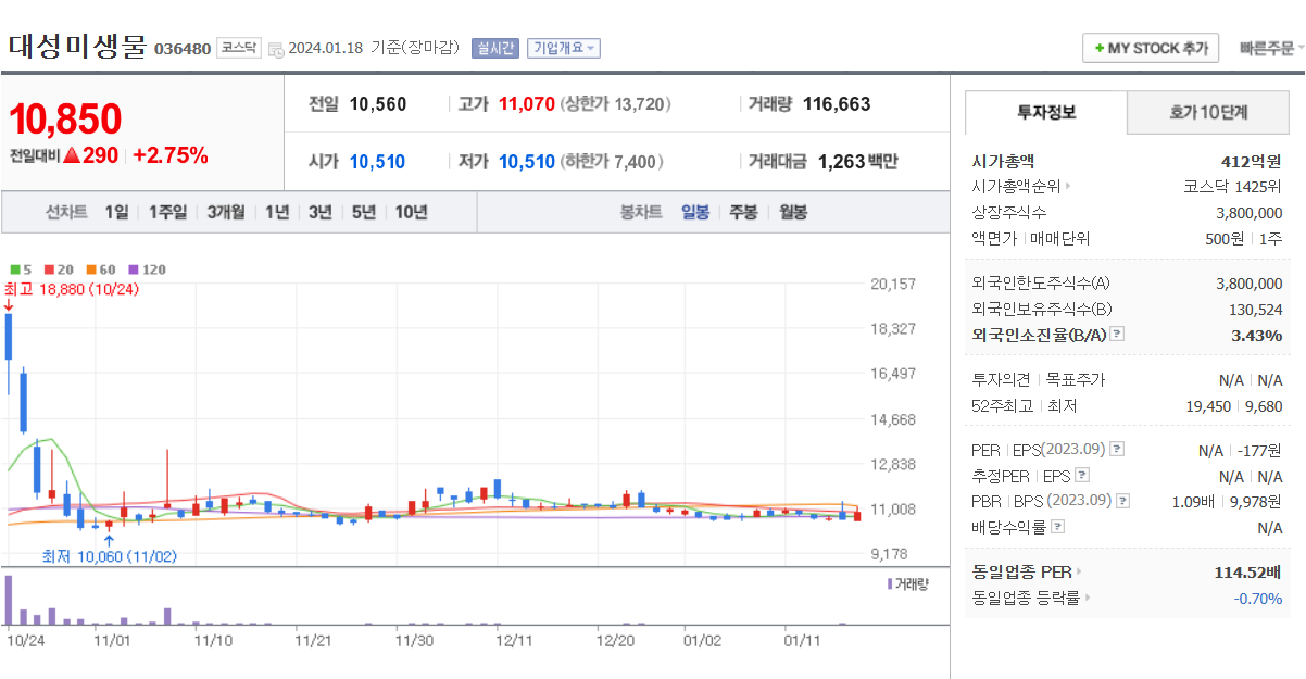 생명공학분야 전문 연구기업이며, 아프리카돼지열병 (ASF) 사용가능 권고 소독제를 판매하고 있는 점이 시장에서 부각되었다.