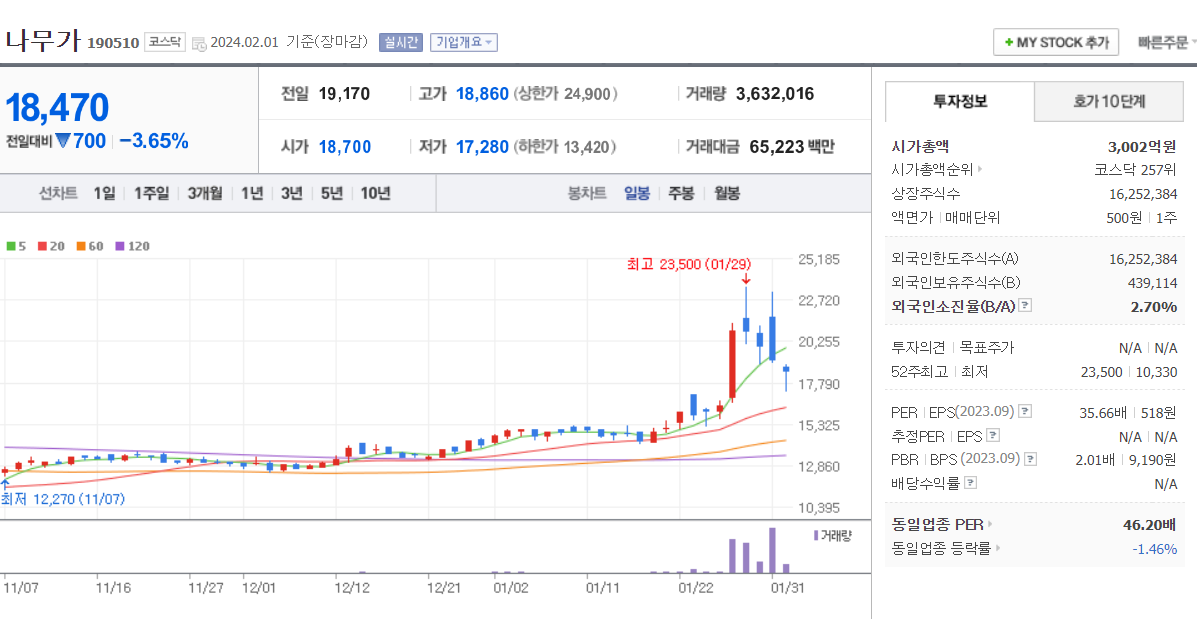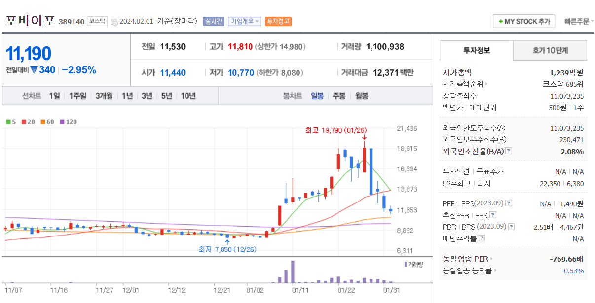 메타의 XR기기 '퀘스트3'에 연성 인쇄회로기판을 독점공급하였다. 애플이 아닌 메타과 관련 있는 주식이지만 가장 크게 반응하고 있다.