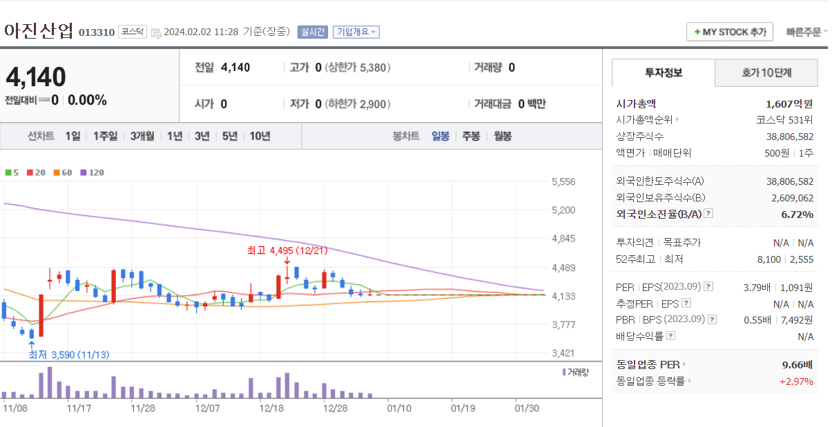 2. 아진산업( 현재 거래 정지 종목)