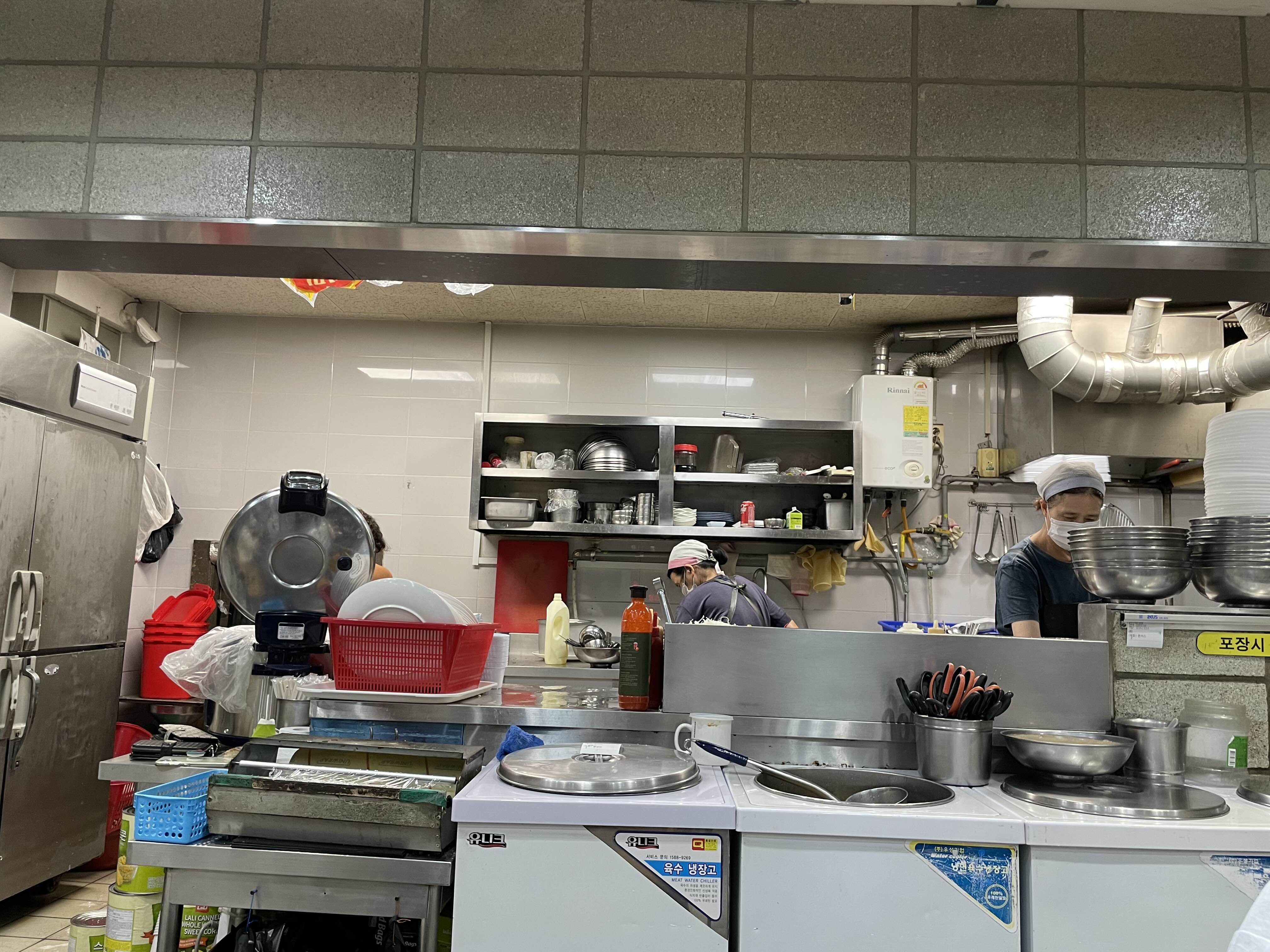 오픈된 주방에서 이모님들이 청결하고 신속하게 음식을 준비해주신다.