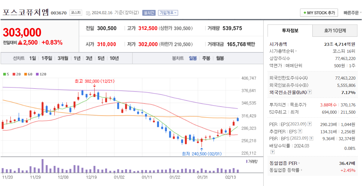 리튬호수 관련주로서 리튬 확보 및 포스코 그룹에서 리튬을 생산하고 있으며, 이차전지 소재 사업을 하기에 주목받고 있다.