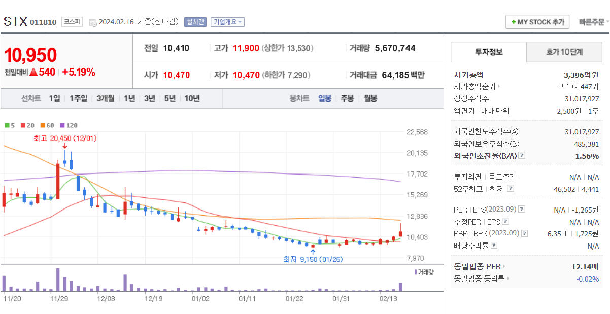 2023년 9월 신설법인 STX그린로지스로 물류·해운사업을 분리하는 인적분할을 실시하였으며, STX마린서비스의 지분도 신설법인에 처분하였다.
