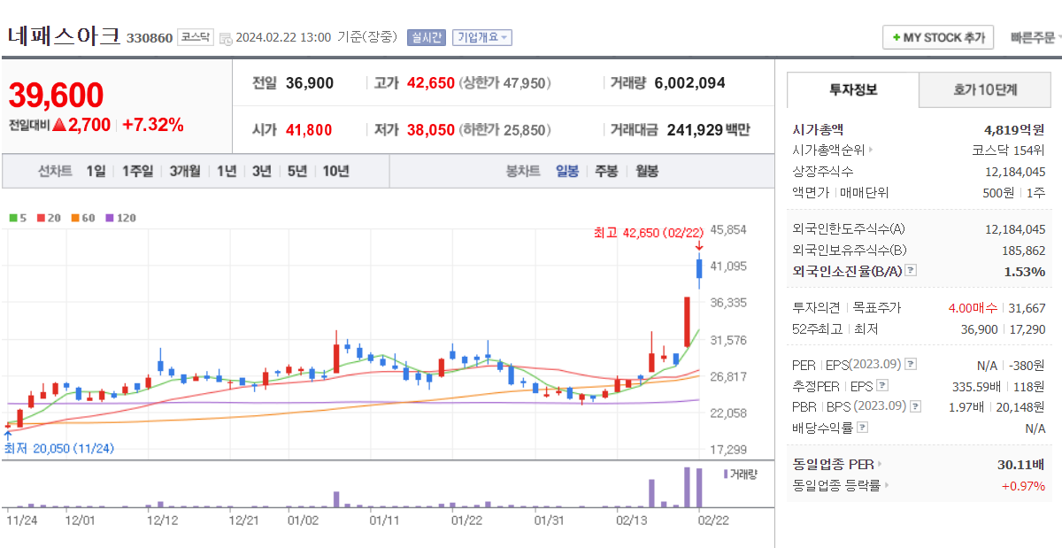 동사는 2019년 4월 네패스의 반도체 테스트 사업부문이 물적분할하여 설립되었고 2020년 11월 17일 자로 코스닥 시장에 주식을 상장하였다.