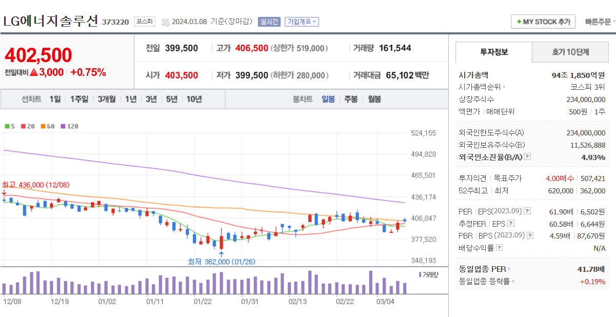 며칠 전 개막한 '인터배터리 2024' 행사를 시작으로 배터리의 관심이 다시 몰리는 듯하다. 이곳에서 우리나라 최고의 배터리 업체 삼성 SDI, LG에너지솔루션등이 전고체 배터리에 개발, 생산 계획에 대해 발표하며 모두의 관심을 가지게 만든 듯하다. 이러한 소식으로 전고체 배터리와 관련된 주식들이 큰 움직임을 보여주었고, 후발 주자로 전고체 배터리의 소재와 관련된 오늘 주제인 황화리튬과 관련된 업체들이 좋은 움직임을 보여주고 있다. 과연 꿈의 배터리라 불리는 전고체 배터리가 언제쯤 개발 완료되어 상용화될지 모르겠지만 현재 이용 중인 리튬이온 배터리보다 더욱더 높은 안전성과 높은 성능을 자랑할 것으로 예상되기에 하루빨리 개발 생산이 이루어졌으면 하는 바람이다.