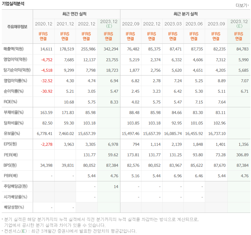 - 2023년 3분기 기준 세계시장에서 EV용 배터리 점유율 14.3%를 차지하고 있음.