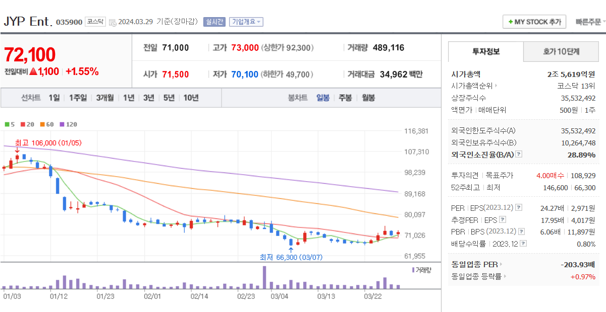 나는 원더걸스, 소녀시대, 포미닛 세대라 할 수 있다. 어느 센가 트와이스가 나오고 블랙핑크가 나왔으며, 아이돌 기획 콘텐츠의 예능이 등장하더니 이제는 따라갈 수 없을 만큼의 아이돌이 쏟아져 나오고 있다. 회사에서 동료들과 이야기 하다 보면 자신의 딸이 투바투를 좋아하고, 누가 예쁘고 이런 대화들을 하다보면 혼란스럽다. 하지만 그런 친구들이 일본에서 음반 판매량 1위를 하고, 미국 빌보드에 차트권에 올라가 있다. 이런 모습들을 보면서 내가 관심을 놓고 있는 사이에 우리나라의 엔터산업은 엄청 발전하고 있음을 느낀다. 이번 글을 작성하며 엔터 관련주들의 재무제표를 살펴보게 되었는데 재무상태 또한 매우 건전하다. 하지만 우리나라 엔터테인먼트 관련 주식에는 치명적인 단점이 존재한다. 남자 연예인의 경우 군복무를 피할 수 없기에 군복무에 들어가면 엔터주는 출렁인다. 또한 소속연예인들의 개인적인 사생활 스캔들 하나하나에 크게 반응하는 경향이 있기에 이러한 부분을 우리는 주의할 필요가 있다.