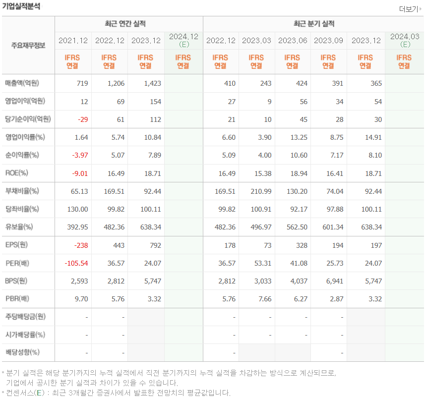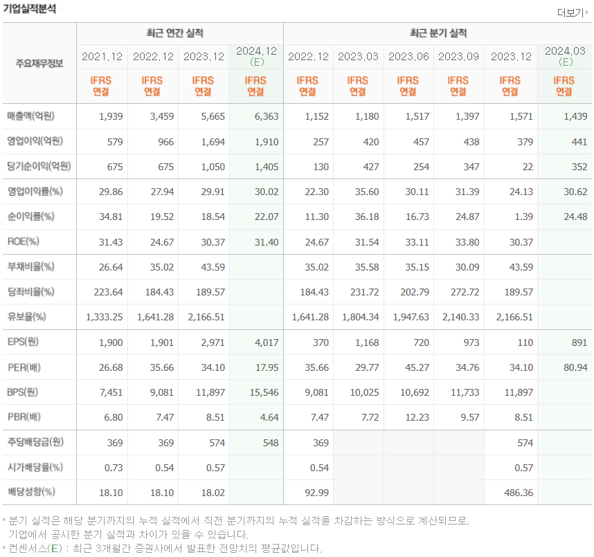 - 매출 구성은 상/제품 약 34.19%, 콘서트 공연 매출 약22.85%, 음악서비스매출 약 14.82%, 광고 모델 매출 약 9.67% 등으로 구성되어 있음.