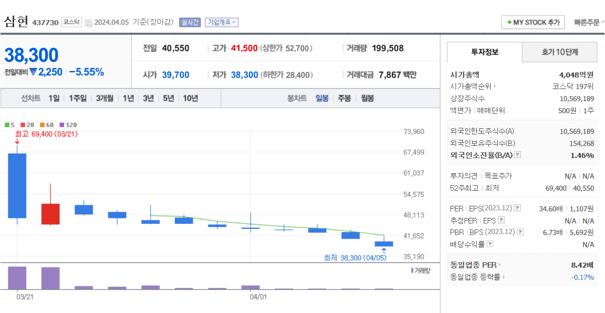 2. 2024년 3월 상장 주식 주가현황