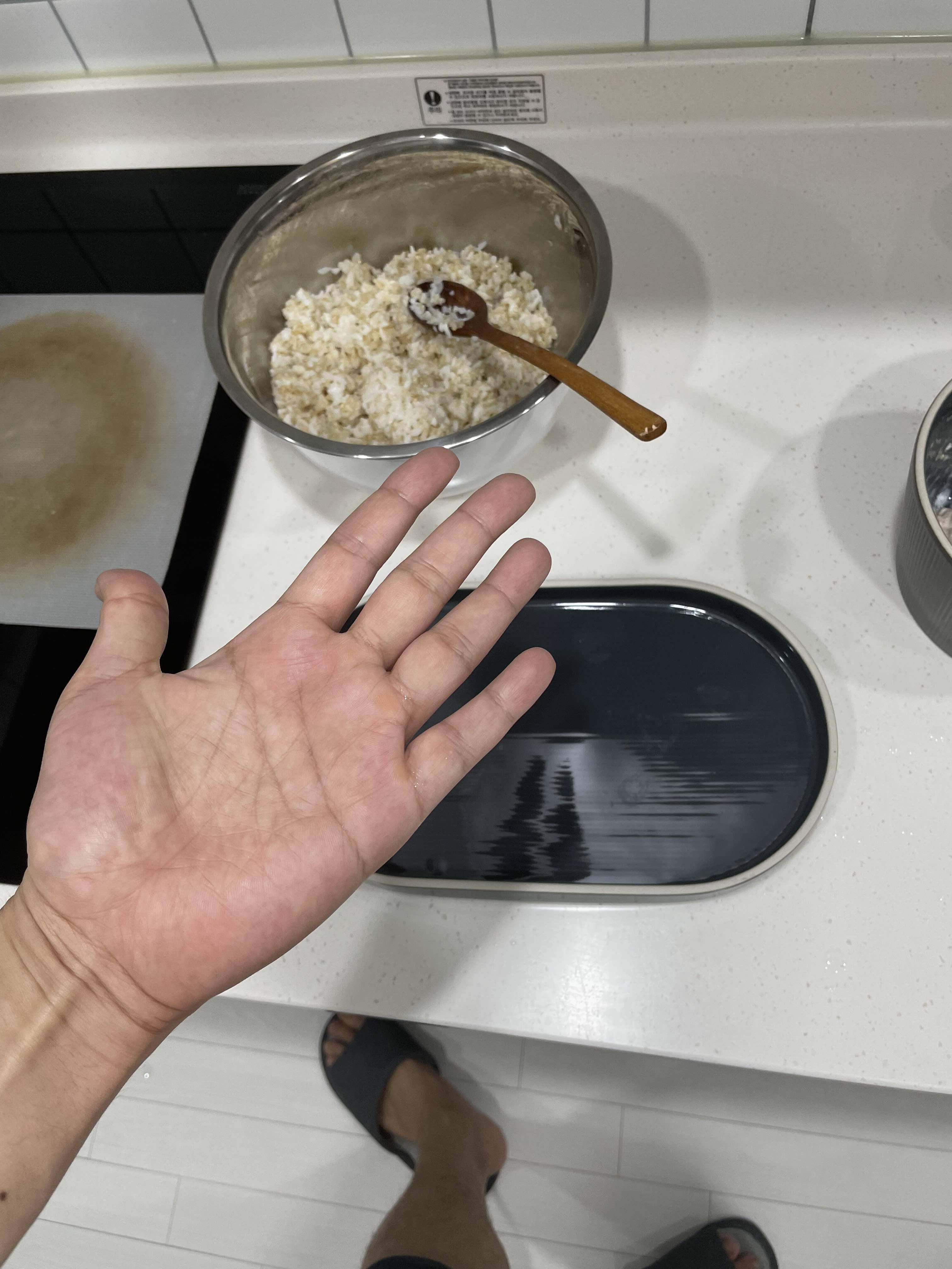 잘 뭉쳐본다. 중간에 참치도 넣고, 잘 만들어본다.