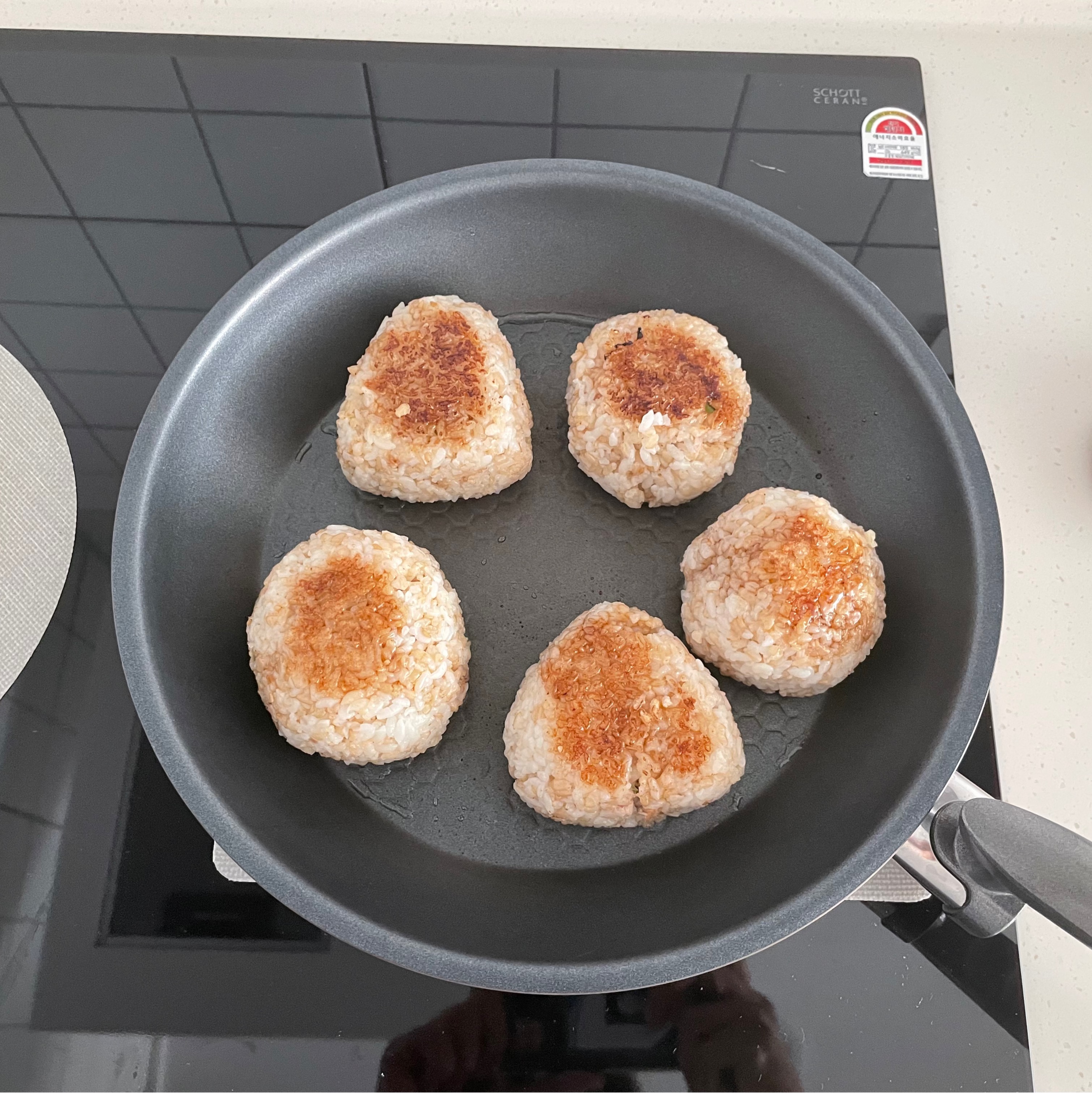 그다음 프라이팬에 올려서 기름 살짝 두르고 앞뒤로 살살 노릇하게 구워준다.