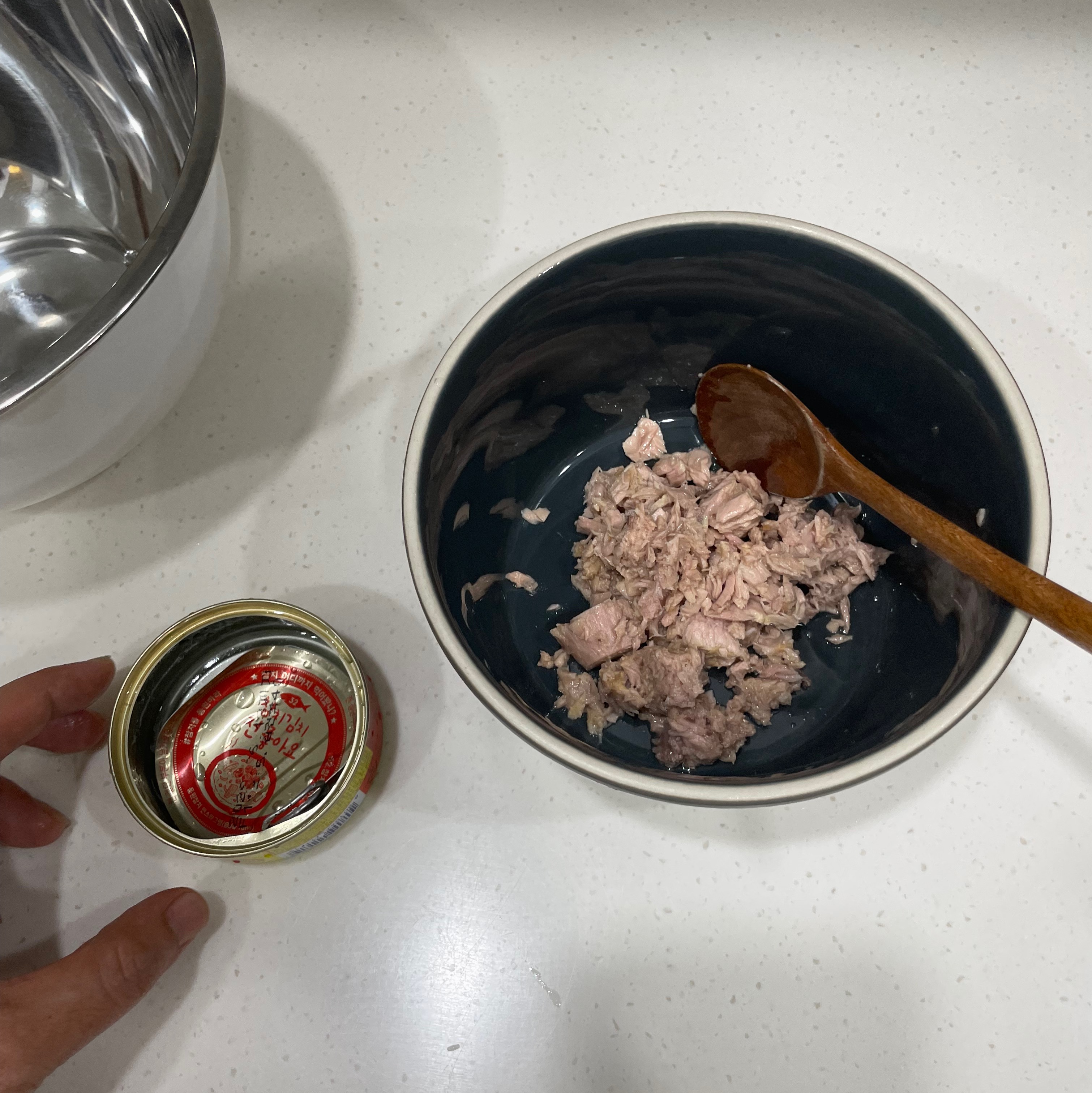 참치를 한 캔 딴다.