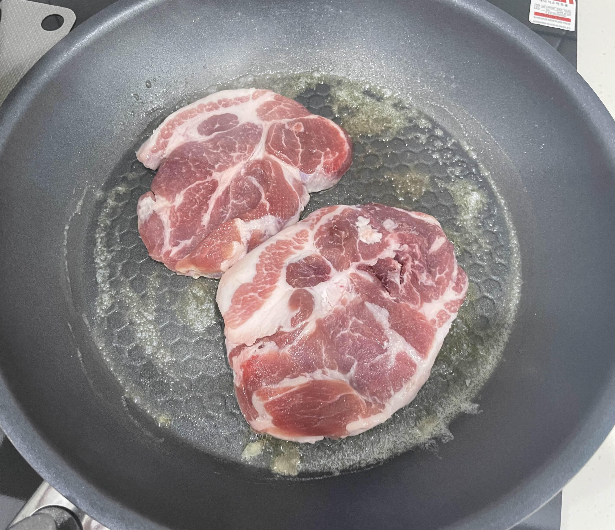 겉이 노릇노릇할 만큼만. 오늘은 냉장고에 있는 목살을 쓰기로 했다.