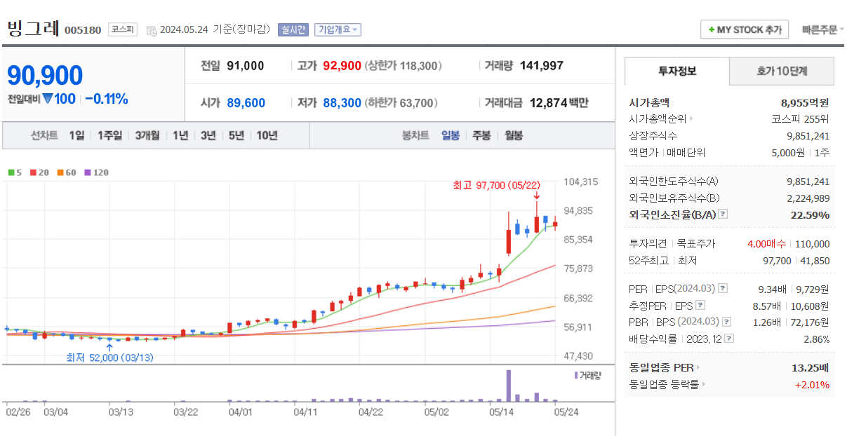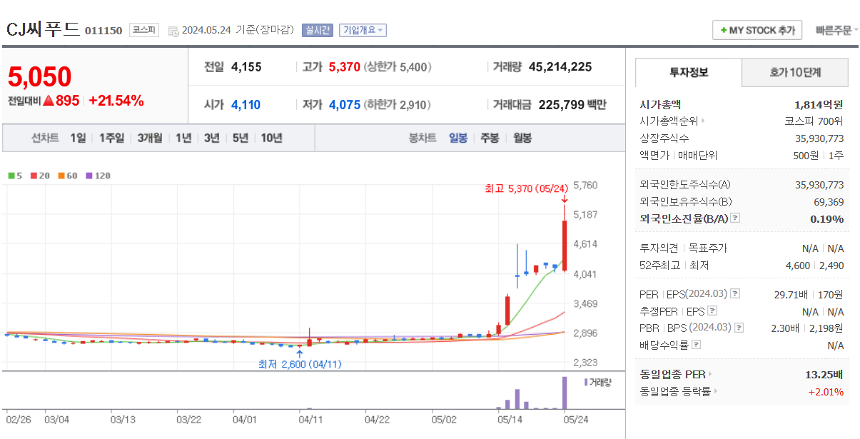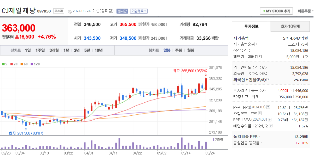 이상으로 K푸드 관련주, 수혜주, 테마주, 대장주 TOP 5에 대해 정리해 보았다.