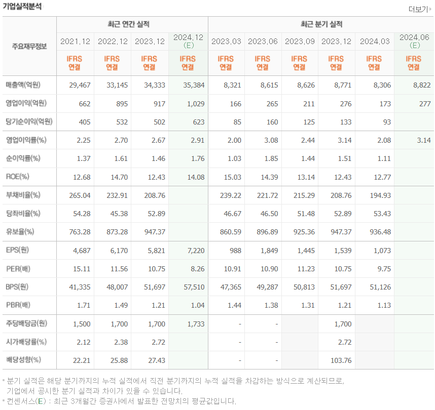 - 또한 식재료 및 관련 식자재 유통 및 단체급식을 제공하는 유통사업부문, 그 외 물류 사업 등의 기타 사업부문으로 구성됨.