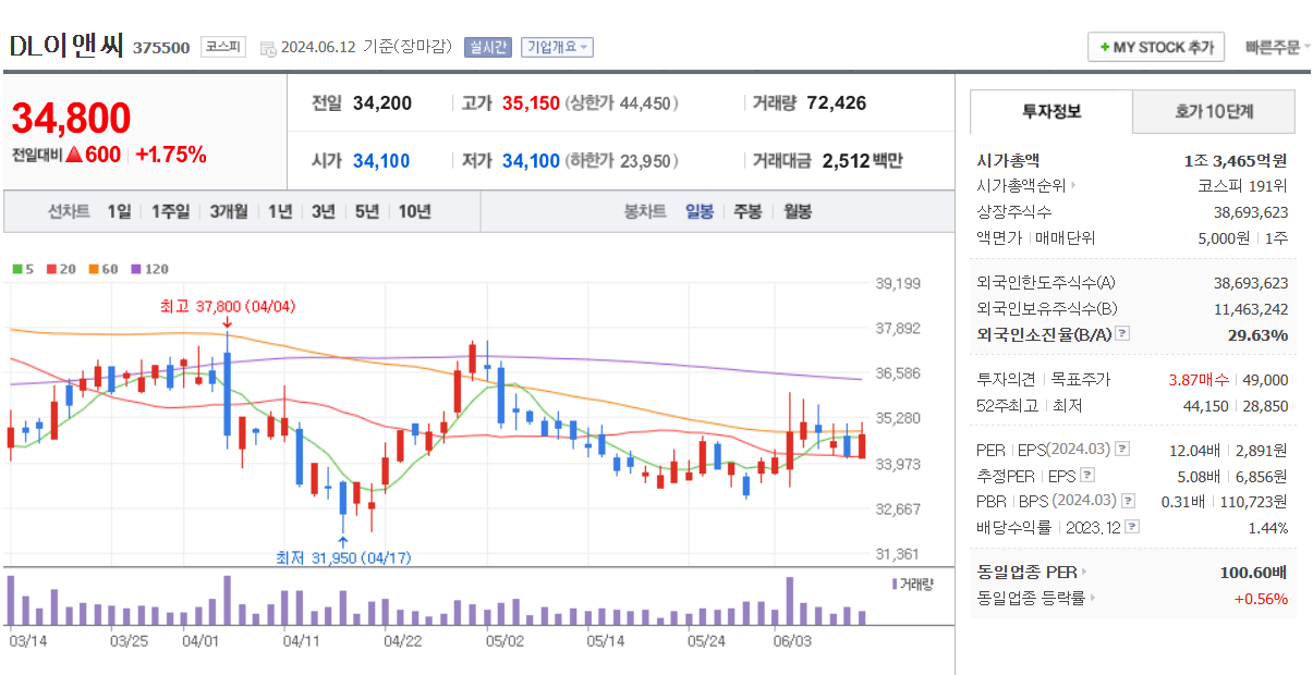 - 동사는 DL(구 대림산업주식회사)가 영위하는 사업 중 건설사업부문을 2021년 1월 4일 분할등기일 기준으로 인적분할되었으며 2021년 1월 25일 자로 유가증권시장에 재상장됨.