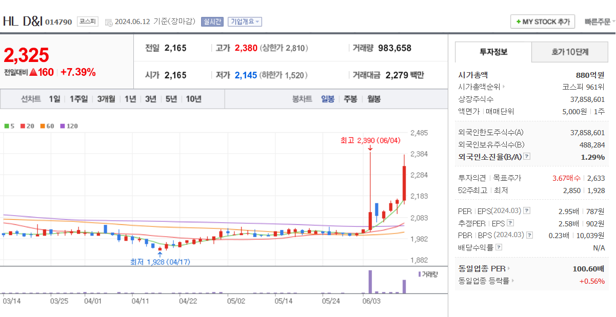 석유와 천연가스에 증시가 들썩인다. 아직 발견은 못한 석유와 가스이지만 그 가능성 하나로 증시가 움직이고 있는 것이다. 그만큼 기대가치가 큰 것이라 할 수 있으며 우리는 이에 조용히 숟가락만 얹으면 될듯하다. 석유, 가스와 관련해서 가장 먼저 석유와 천연가스 관련 주식들이 움직였으며 그다음은 시멘트와 같이 시추와 관련된 주식들이 움직임을 보여주었다. 이제는 석유, 가스 매장이 예상되는 곳과 가까운 영일만항의 개발과 관련된 주식들이 움직임을 보여주었다. 여기서 주목할 점은 영일신항만의 2,3,4대 주주들은 움직임을 보여주었는데 최대주주는 왜 움직임이 미미 한이다. 이유는 시장에서 DL이앤씨가 영일신항만 지분의 전부를 정리했다는 소문이 돈 것이 영향을 미친것이라는 추측이 있으며, 하지만 여전히 지분을 보유하고 있다는 것이 관계자의 설명이기에 이점 참고하시길 바란다.