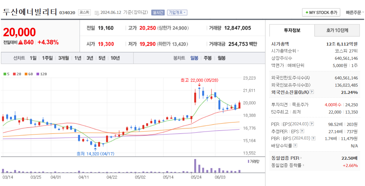 두산에너빌리티는 포항 영일신항만의 4대 주주로 지분 10.83%를 보유하고 있다.