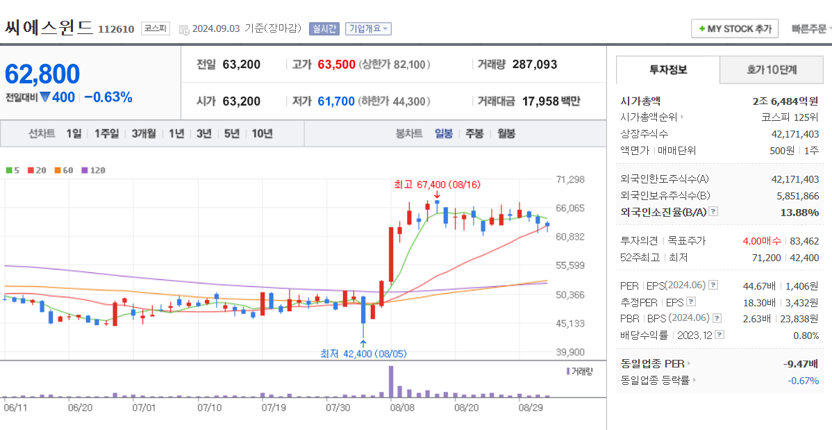 미국 민주당과 해리스의 친환경 신재생 에너지 발전과 관련된 정책의 수혜 기대감에 글로벌 시장에 풍력타워를 공급하고 있는 씨에스 윈드가 편입되었다.