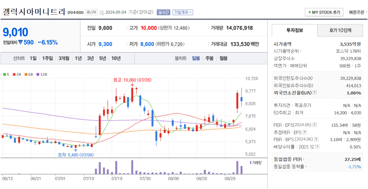 스포츠 마케팅과 운동기구 유통 사업을 영위하며, 갤럭시아머니트리의 지분 55%를 보유하고 있다.