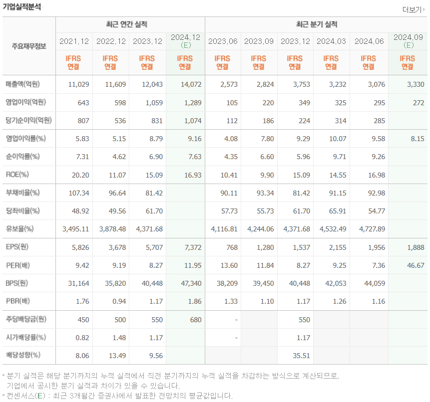 - 2023년도 연간 기준으로 대리점이 66%, 홈쇼핑 11%, 할인양판점이 약 23%를 차지하고 있으며, 2024년 1분기 기준으로 선풍기의 매출비중이 54.7% 정도 차지한다.