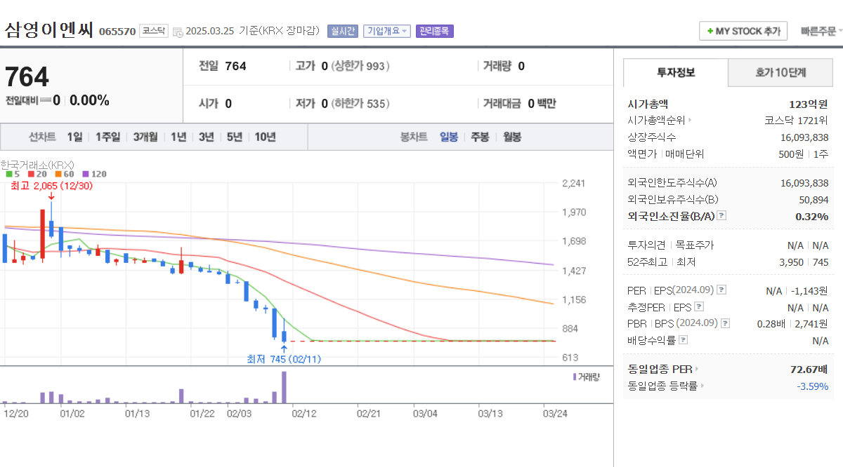 🔹 ②삼영이엔씨 (065570) (거래 정지 종목)