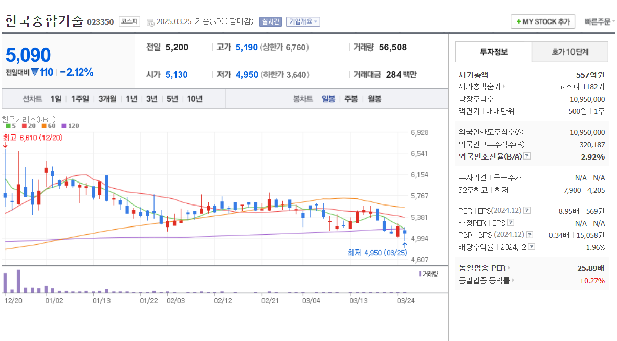 🔹 ④ 한국종합기술 (023350)