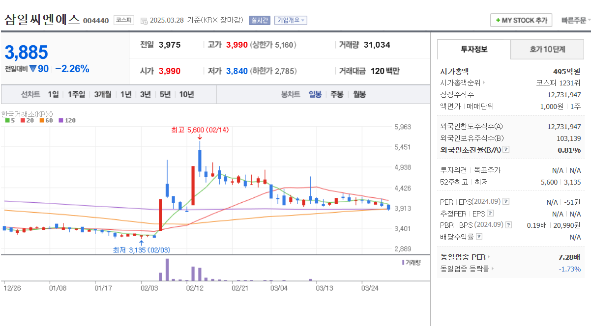 🔹 ② 삼일씨엔에스 (004440)