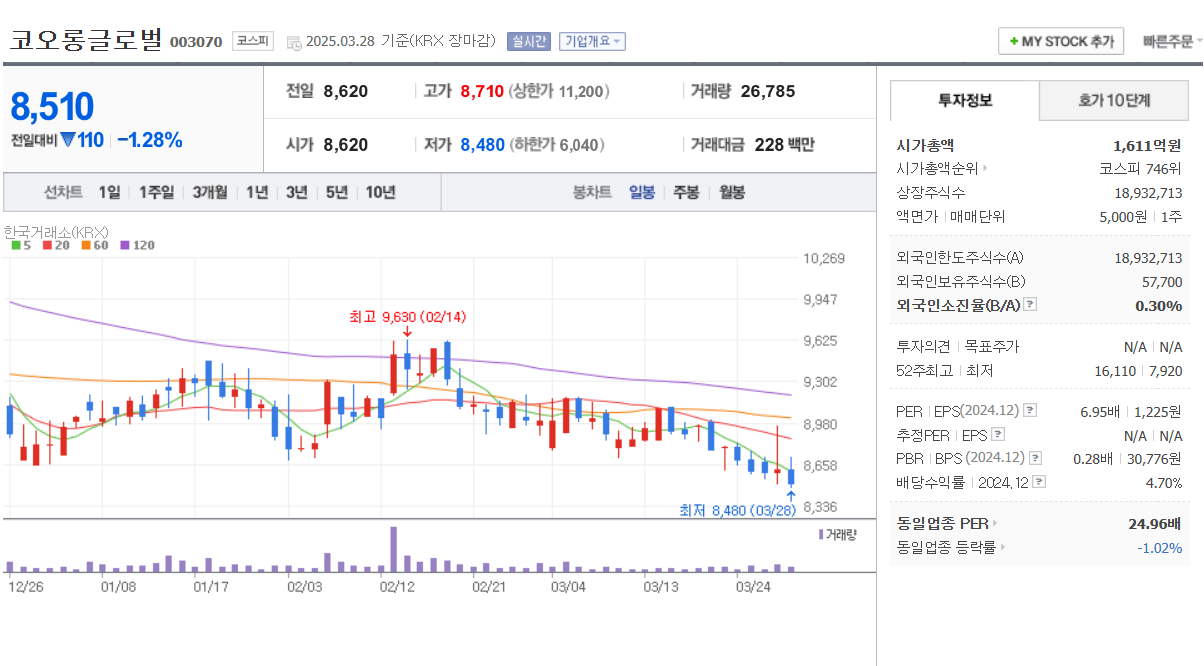 🔹 ① 코오롱글로벌 (003070)