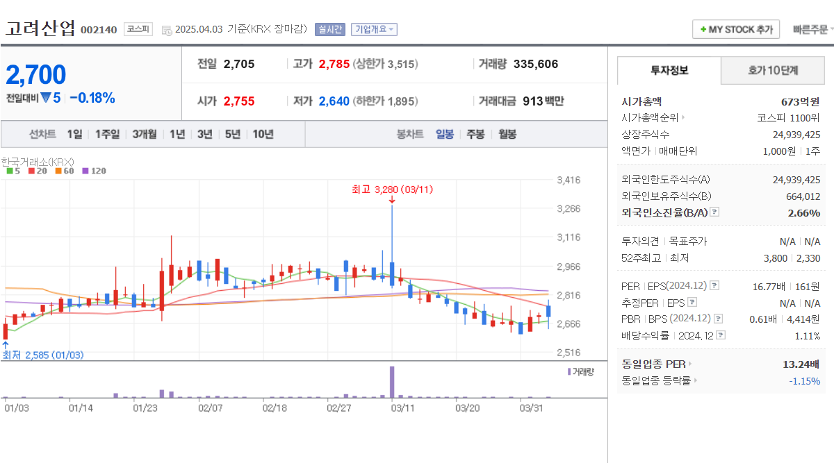 🔹 고려산업 (002140)