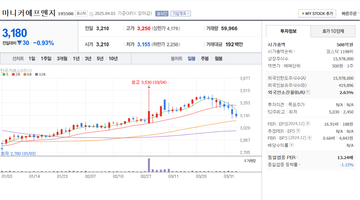 🔹 마니커에프앤지 (195500)