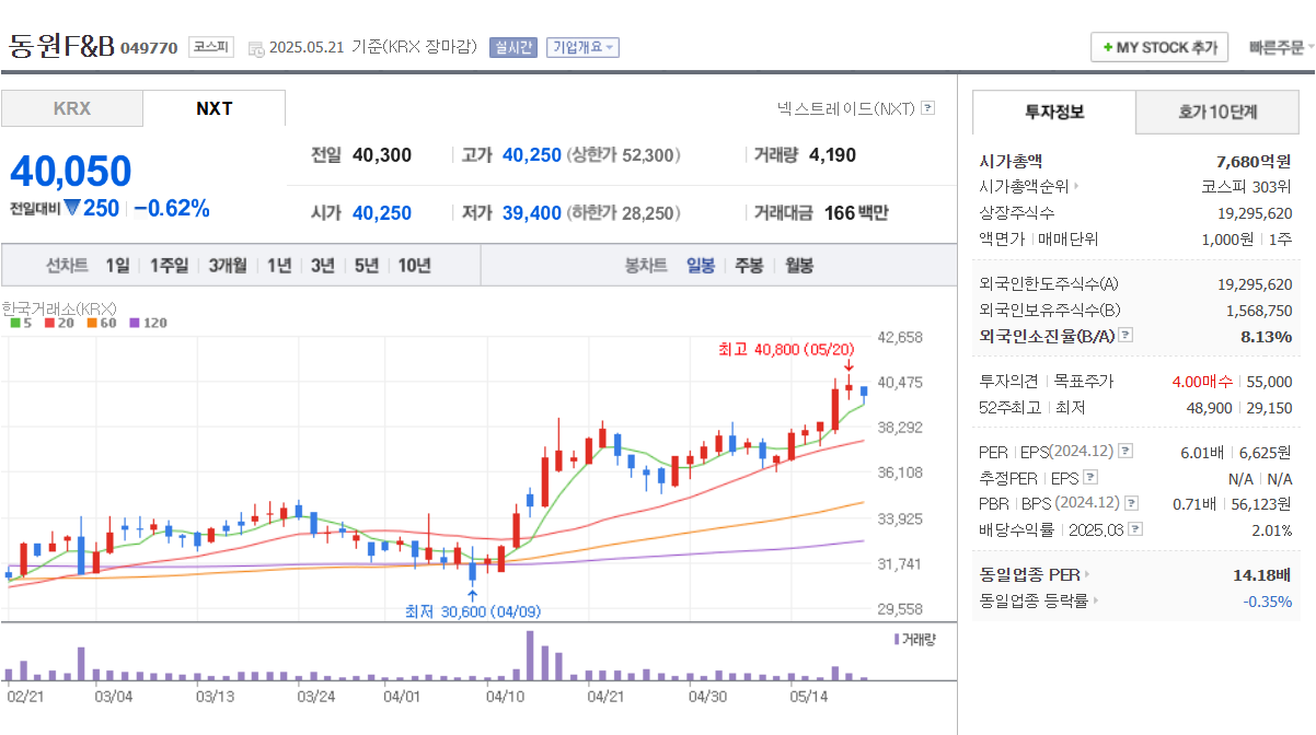 🔹 3. 동원F&B (049770)