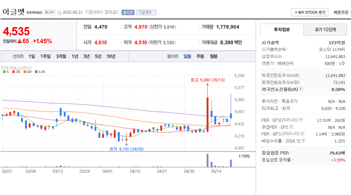 🔹 2. 이글벳 (044960)