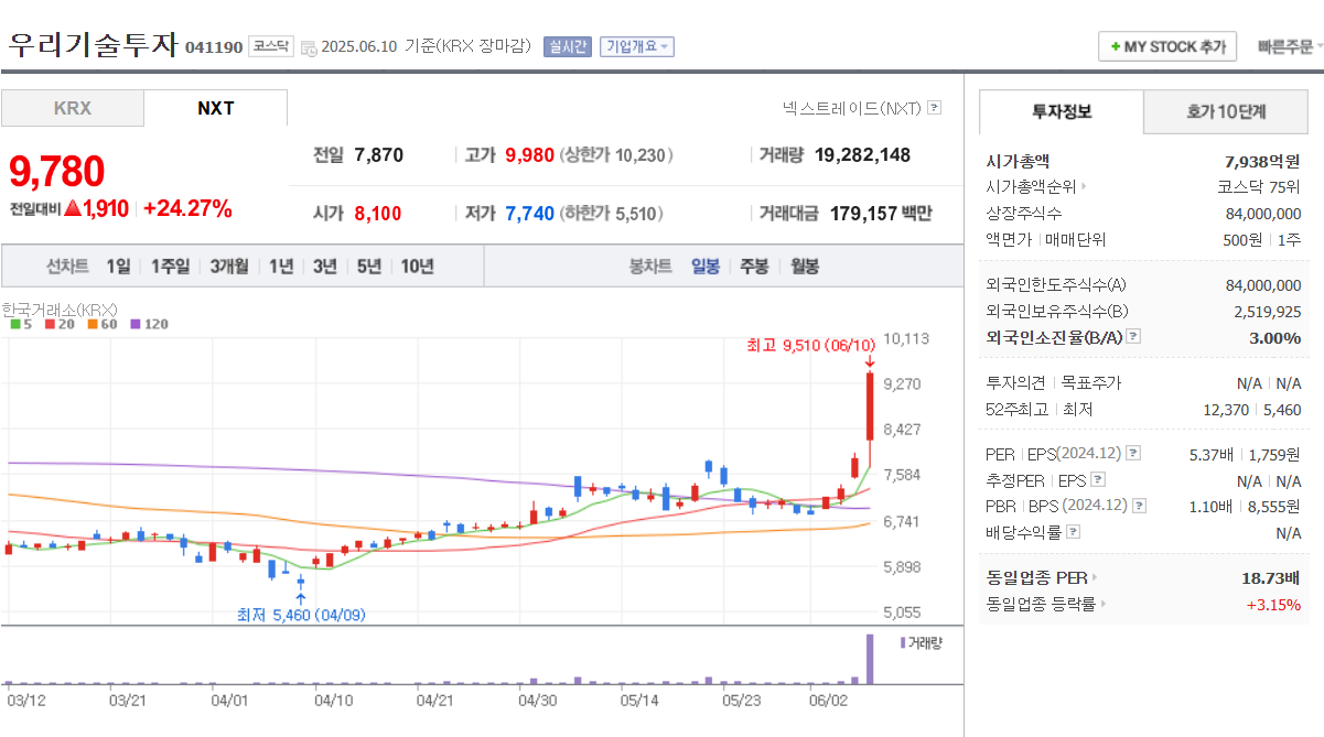 🔹 5. 우리기술투자