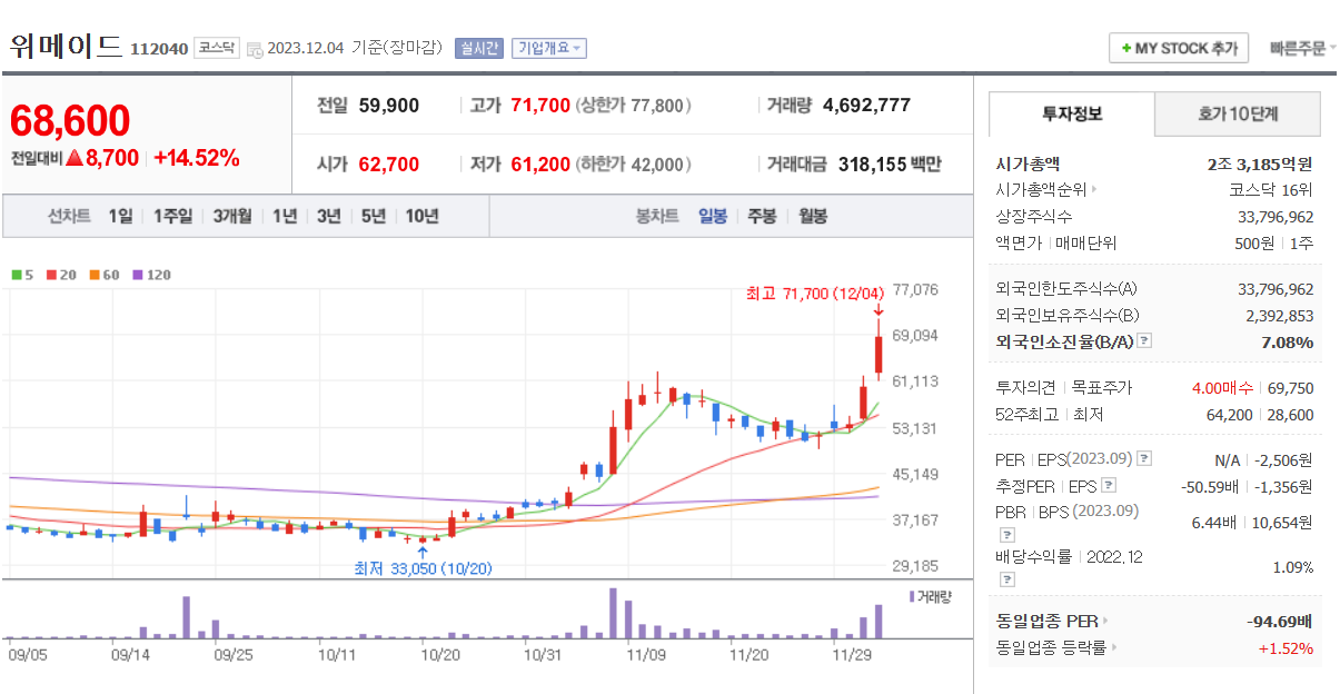 게임 관련주이지만 코인거래소 빗썸의 지분을 17.83% 보유 중이다.