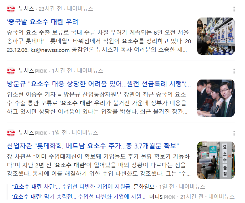 2021년 중국이 요소 수출을 제한했을 때, 국내에서는 난리가 난리가 난리도 아니었다. 트럭을 통한 운송 마비와 다를 게 없는 사태가 벌어졌으며, 요소수 가격은 심하게는 10배까지 급등을 했다. 또다시 이런 일들이 발생하면 안 되겠지만, 우리는 이를 주식시장에서 이용하는 법 또한 배워야 할 것 같다. 이런 이슈를 통해 주목받는 주식은 변동성이 많이 심하기에 다들 주의를 하며, 투자하시길 바란다.