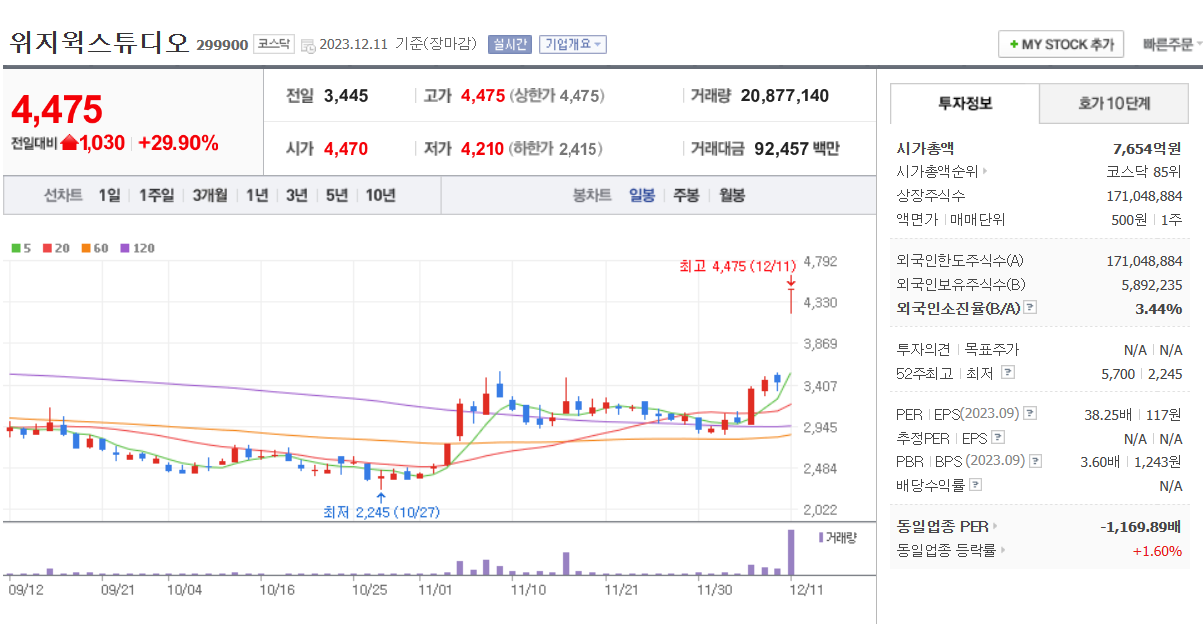 와이더플래닛 유상증자에 참여하는 위지윅스튜디오의 자회사이다.