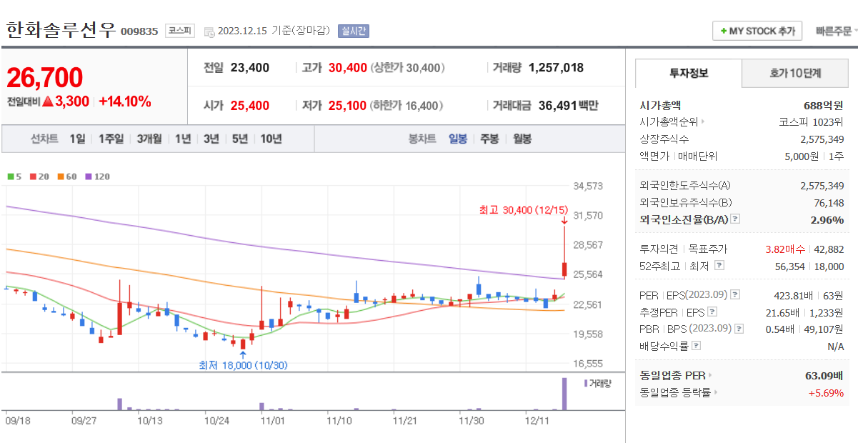 이번에는 신재생에너지에 관련된 주식들을 알아보았다. 연말에는 난방, 독감과 같은 테마의 주식들을 정리해서 올릴 줄 알았는데, 매일매일 주목받는 주식들이 내 예상과 많이 다른 것 같다. 하지만 늘 준비를 해야 언제든지 발 빠르게 대처할 수 있기에 공부를 게을리해서는 안되며, 이 것도 나에게 공부의 일환이라 생각한다.