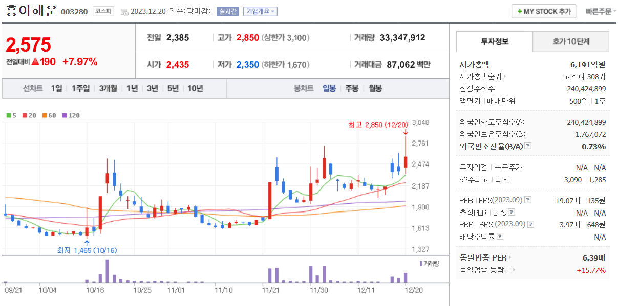 동사는 1961년 12월 설립되어 1976년 6월 유가증권시장에 상장됨. 또한 2021년 6월 경영정상화 목적의 유상증자를 진행하여 장금상선이 최대주주가 됨.