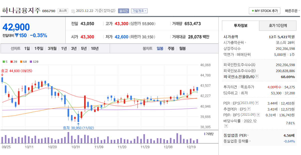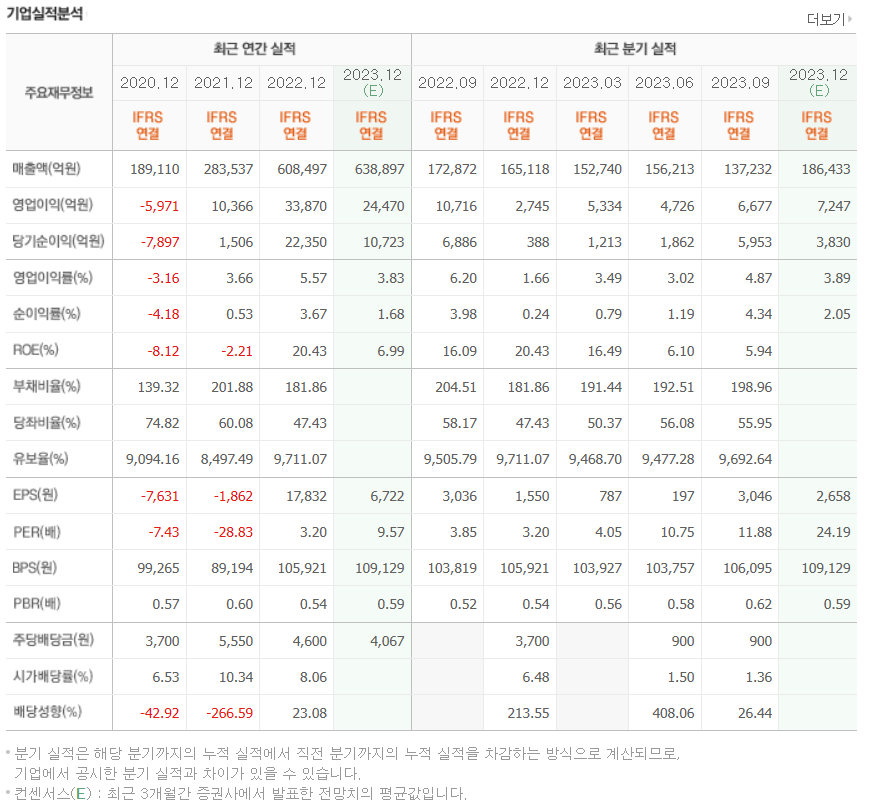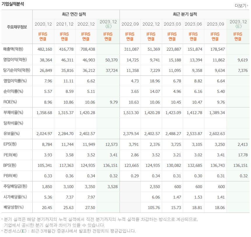 꾸준히 배당률이 증가하는 기업은 아니지만, 주주친화적인 경영을 하는 듯하다. 또한 2018년 ~2020년 3700원, 그리고 2021년 5500원, 2022년 4600원을 배당하는 등 매우 높은 배당률을 보여주고 있으며, 12월 26일까지 보유한다면 2267원의 배당금을 받을 수 있을 것이라 예상된다.