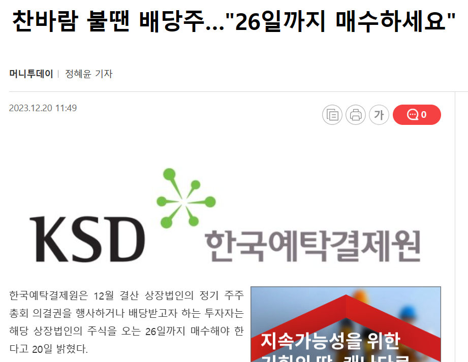 | [배당주 2탄] 배당주, 배당 기준일 변경, 추천 연말배당주 정리 (2) | 2023.12.25 |