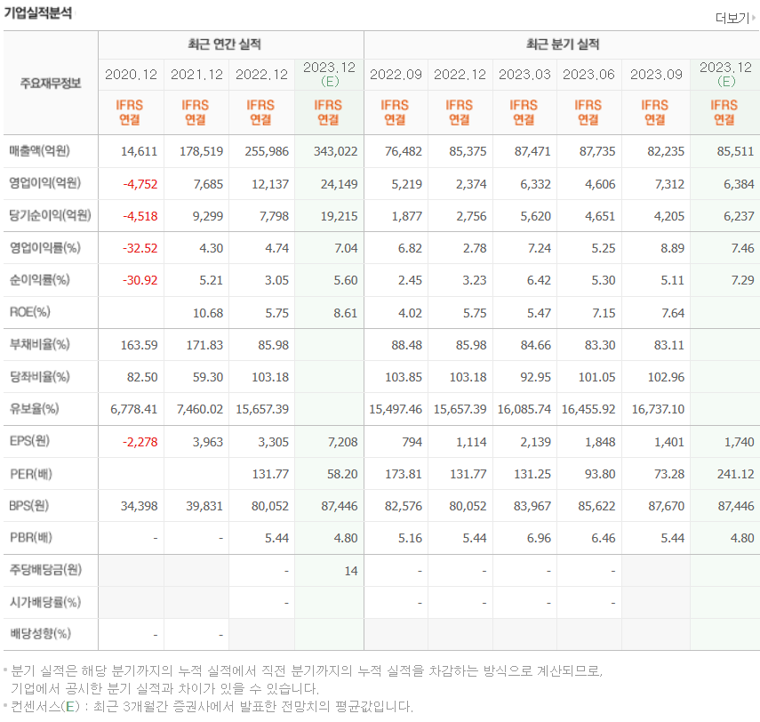 2023년 3분기 기준 세계시장에서 EV용 배터리 점유율 14.3%를 차지하고 있음.