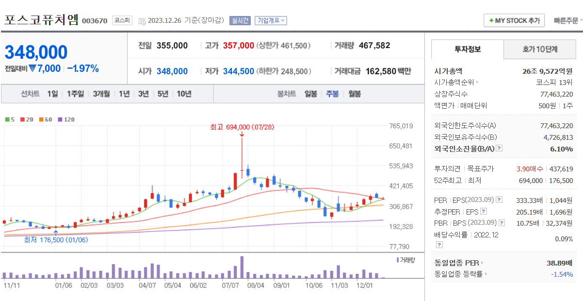 포스코그룹 계열의 소재 전문회사로 2021년 약 1조 2천7백억 원의 유상증자를 통해 대규모 투자 재원을 확보함.