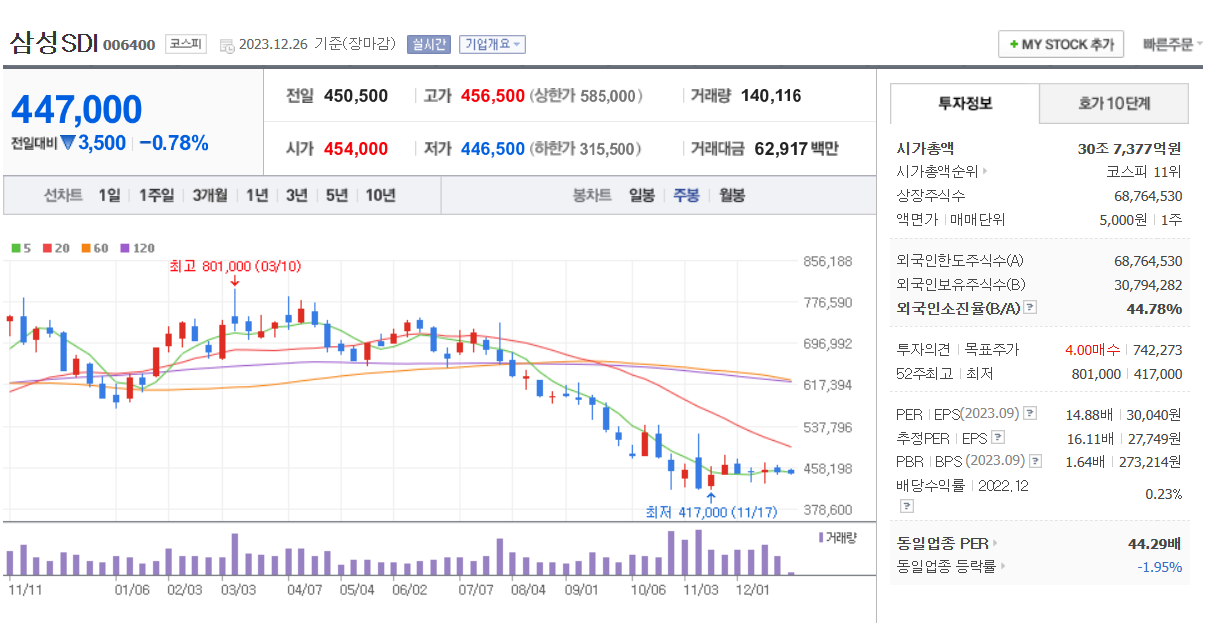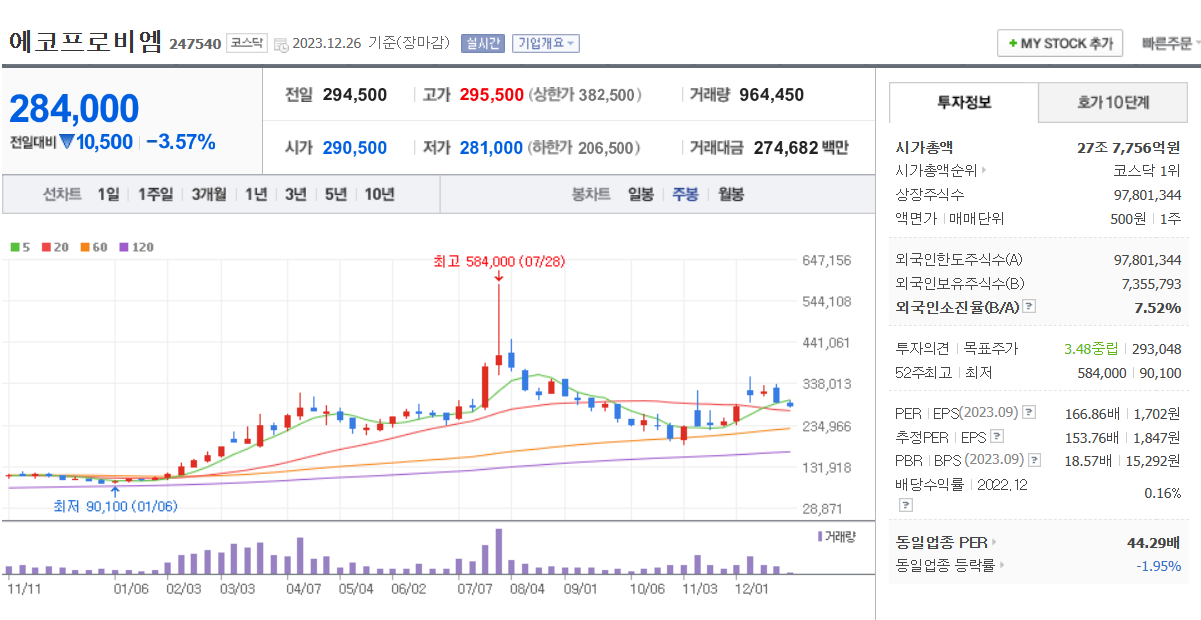 올해는 2차 전지의 해였다고 봐도 무방하다. POSCO 그룹은 2차 전지에 힘입어 시총 증가율 1위를 보여주었고, 에코프로 3형제 등과 같은 놀라운 수익을 보여준 대형주들도 나왔다. 또한 올해 초 에코프로는 10만 원 초반에서 시작해 150만 원까지 상승하는 1400% 이상의 기록적인 수익률을 기록하기도 했다. 또한 2차 전지 열풍을 불러일으킨 금양아저씨도 빼놓을 수 없겠다. 말할수록 입만 아픈 올해의 한국 시장을 이끌어간 대표적인 2차 전지 테마주에 대해 정리해 보자.